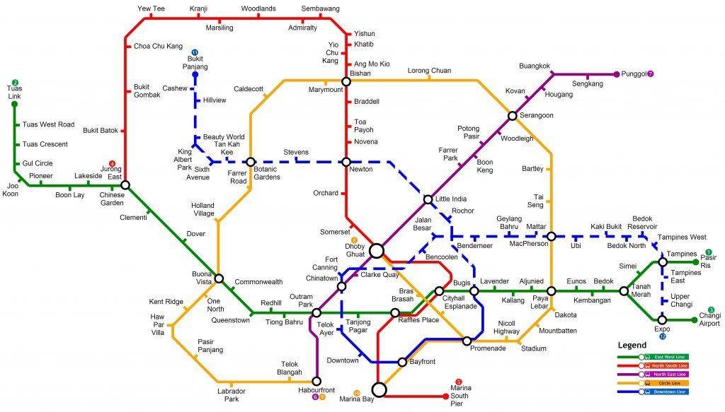 Já está em funcionamento a Downtown Line, de Singapura, programada em três fases e com uma longitude total de 42 quilômetros. Com finalização prevista para 2017, a linha fará conexão entre o centro e as áreas residenciais do nordeste e leste da cidade e terá um total de 34 estações.