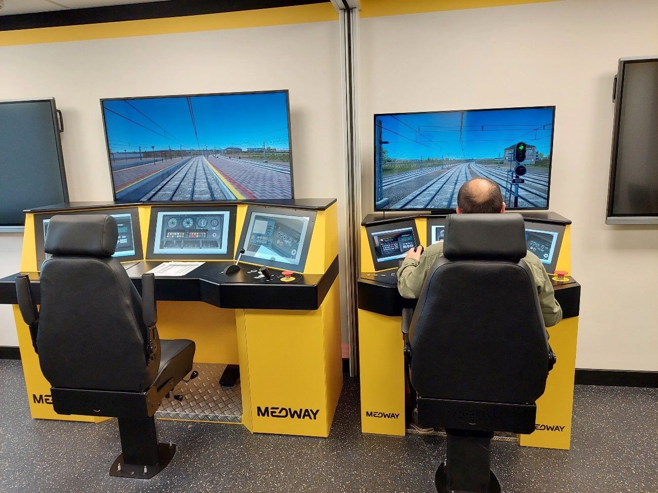 Both simulators simulate a 100 km-long line that includes all the obstacles and issues present in the RTR and can train drivers on different situations of degraded operation, time of day and weather.