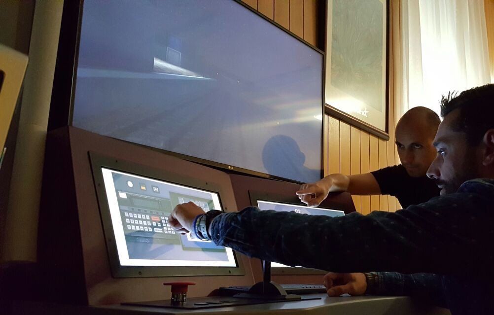 Cada um deles possui um painel de condução, provido de comandos reais (regulador de tração, freios automático e direto, freio de emergência, sistema ASFA e homem morto) e comandos virtuais simulados em duas telas táteis e um monitor panorâmico de 43 polegadas para a representação do entorno visual.